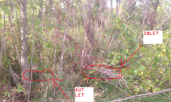 These to drain pipes where so over grown I had to take a chain saw into the thick forest to find them.