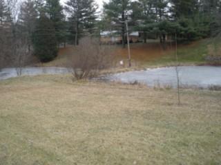 This is two separate ponds joined with an overflow tube, separated by a damn. Muskrats began boring holes in damn and it began failling, and letting water through. We went in and made improvements to the damn and added a much larger overflow tube.