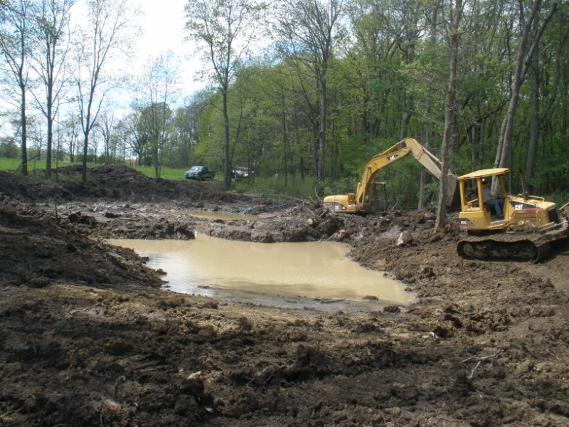 THIS POND WAS DUG FOR FISHING AND SWIMMING IN THE BACK OF A FARM IN ANN ARBOR. WE HAD TO REMOVE OVER 75 TREE'S AND DEWATER BEFORE WE COULD GET STARTED. THE WATER YOU SEE FROM THE BEGINNING IS ONLY ABOUT 18'' DEEP WITH A HARD BOTTOM.