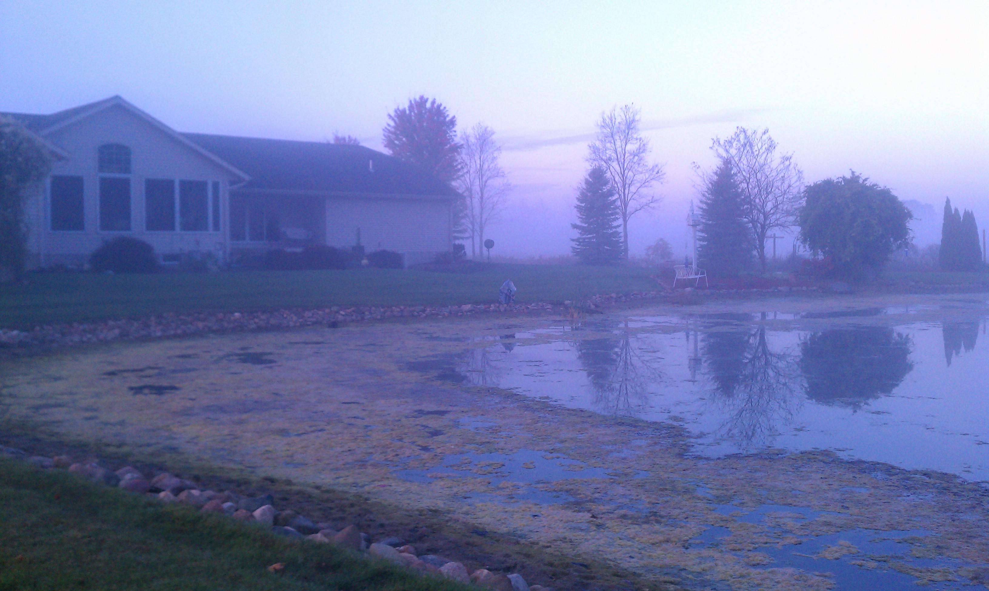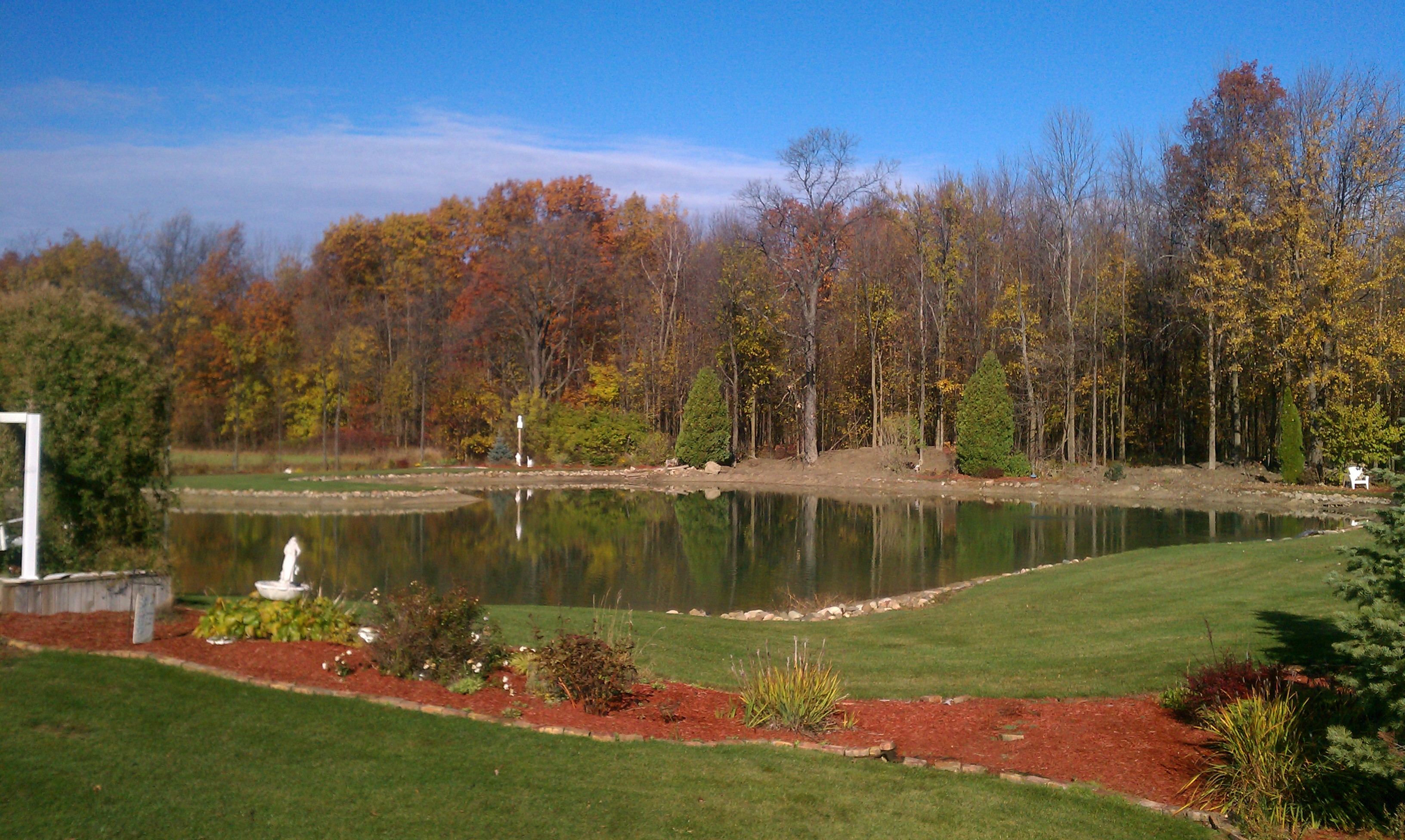 Here is a pond that is about 10 years old that needed to be cleaned out. We pumped pond down just enough so fish would survive and we dredged about 1 foot of much and sediments from the bottom.