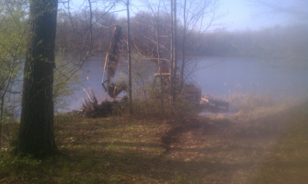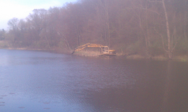 This customer in White Lake Michigan was having problems getting his boat to the dock with out his propeller hitting muck. We dug out the area and placed it on shore.